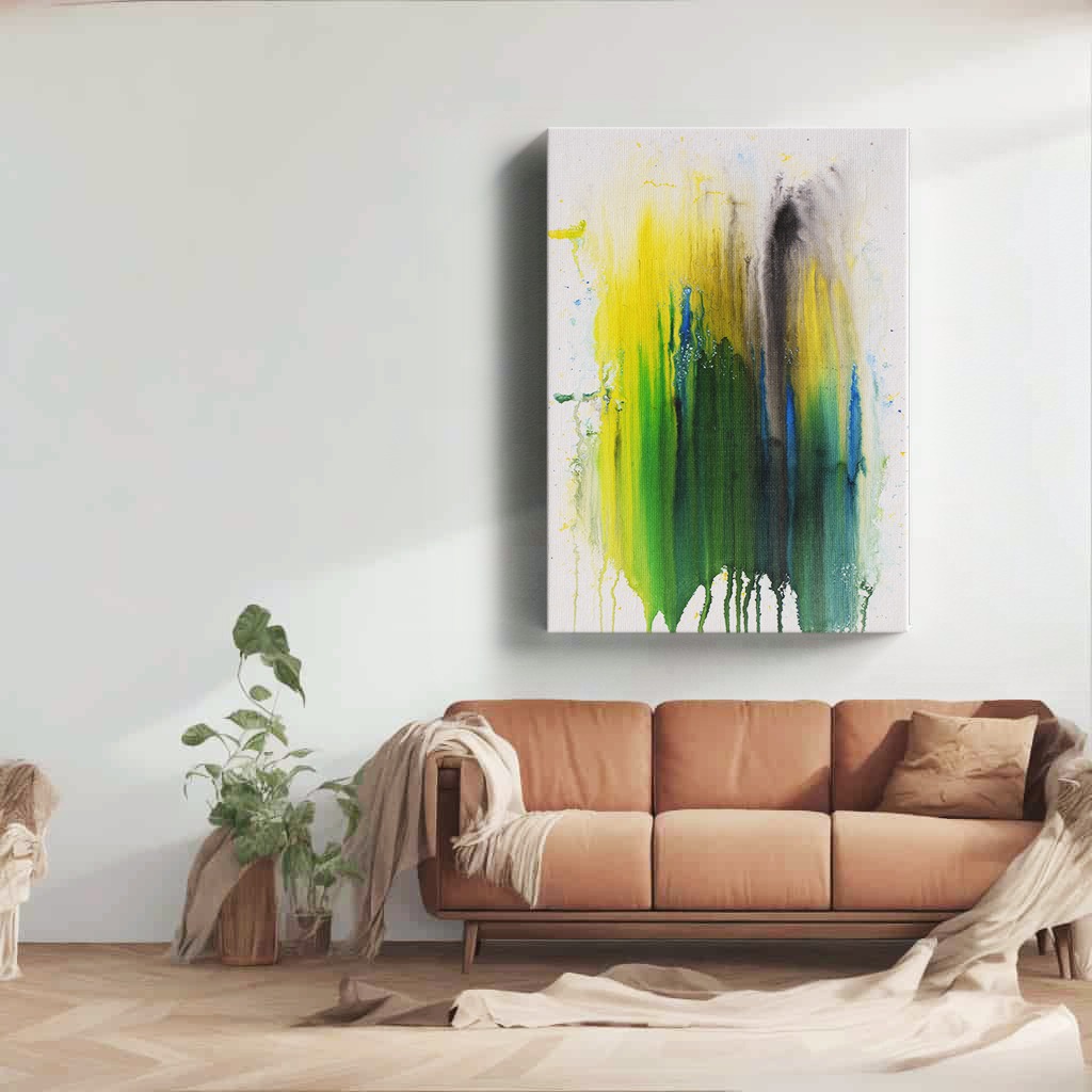 Obraz je natiahnutý na drevenom ráme s pripevneným háčikom na zavesenie.